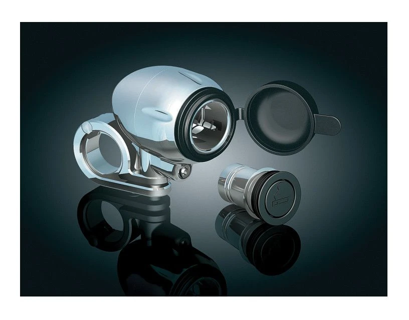 Perfect for plugging in accessories like cellphones, iPod, GPS, air pump, etc. Dressed up like a silver bullet light housing for a sleek look. Includes everything needed to connect directly to a battery or accessory wiring harness. Mount it above your handlebars or check for tank clearance & mount it below. Available with handlebar clamps for 1″ or 1 1/4″ diameter handlebars.