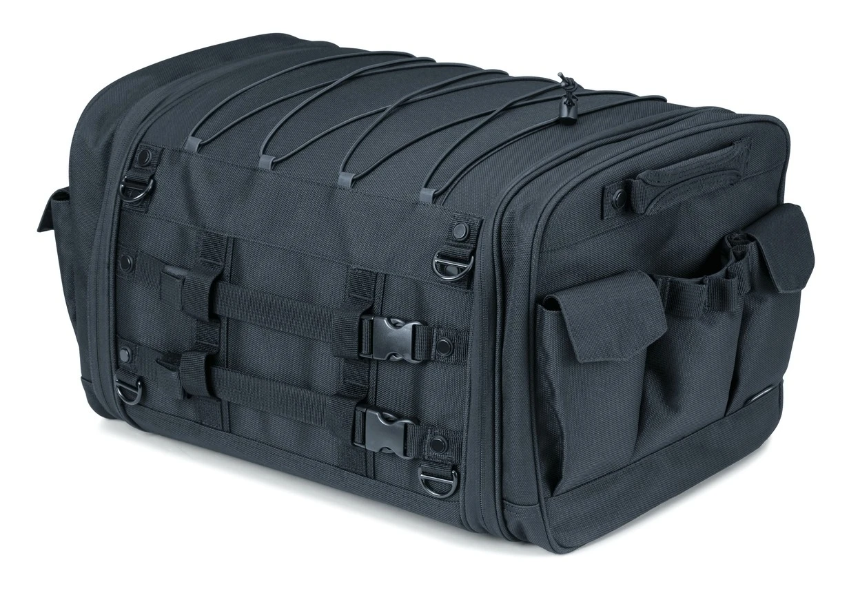 The Drifter is your go-to travel companion for wherever you roam and whatever you ride. The utilitarian design features a rigid structure that offers a variety of convenient mounting options on passenger seats, sissy bars, or tour trunk luggage racks.