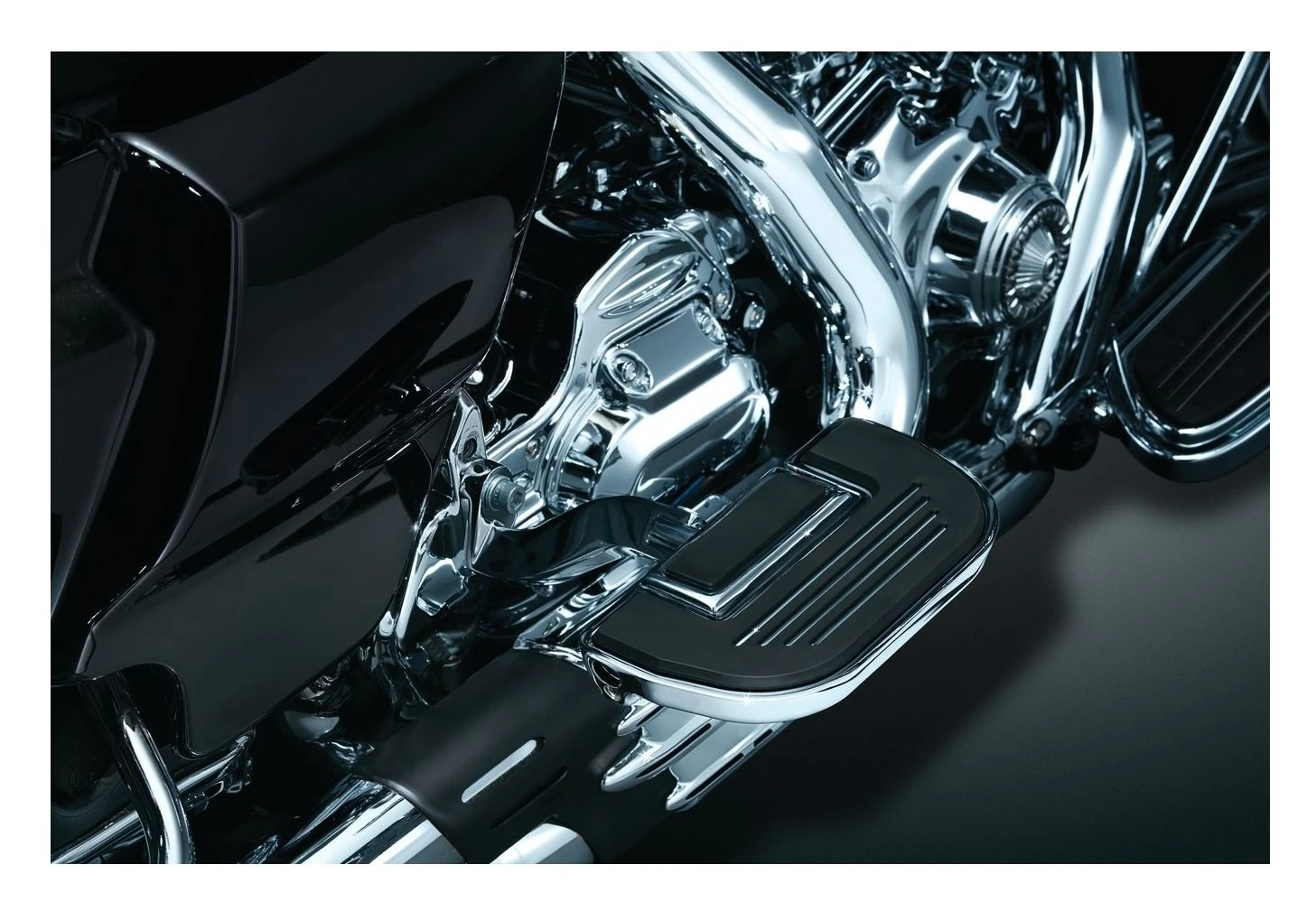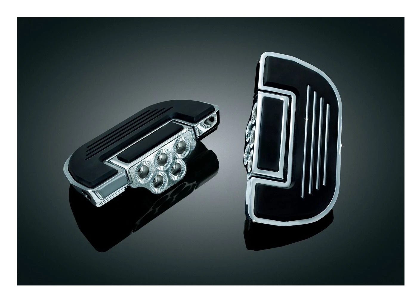 Style, quality, function, value and adjust-ability all in one. Switching to floorboards just got easier and with five thoughtfully placed splined mounting options, these boards can be fine tuned just right for the rider or passenger. Brilliant chrome finished base with chrome inlays in the foot pad rubber.