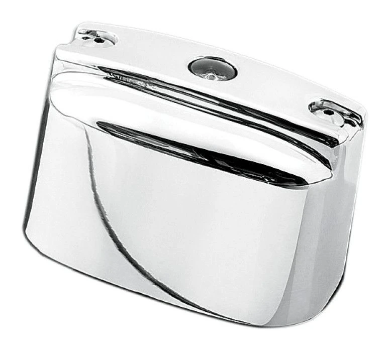 The super clean chrome one-piece design covers the entire rear brake master cylinder assembly. Features a simple installation buy using only two fasteners.