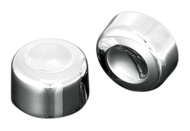 Quickly and easily cover the ends of the swingarm pivot shaft on your Twin Cam Softail with these chrome-plated covers.