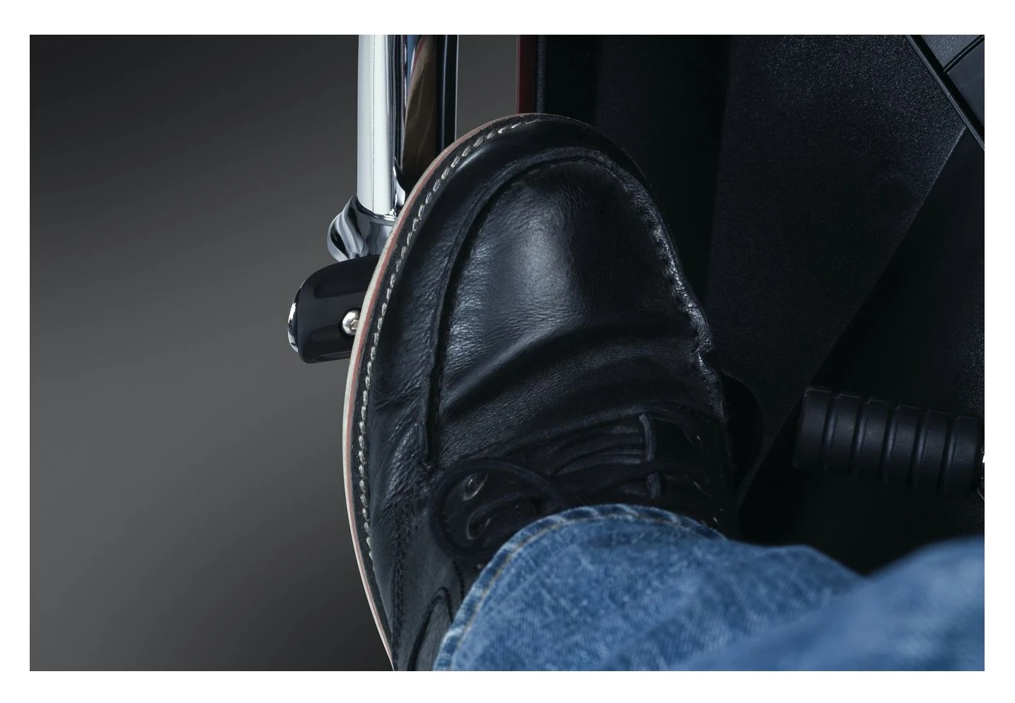 The perfect mini highway pegs for Cruiser models. These minimalist toe rest mounts attach directly to the engine guard to allow positioning of the operator’s heel on the floorboard with the front of the foot resting just behind the engine guard for a comfortable cruising option.