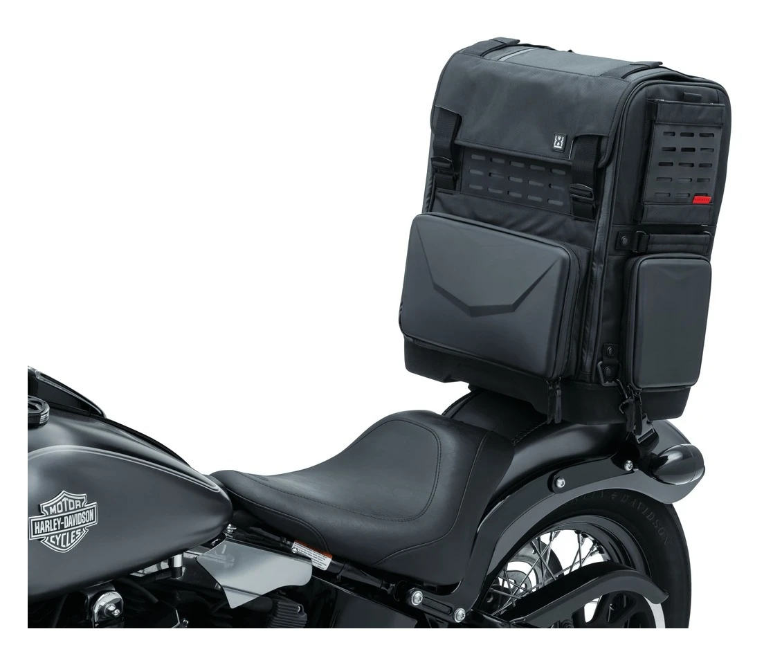 - High-strength hook-&-loop sissy bar strap for easy mounting to passenger backrests or sissy bars
