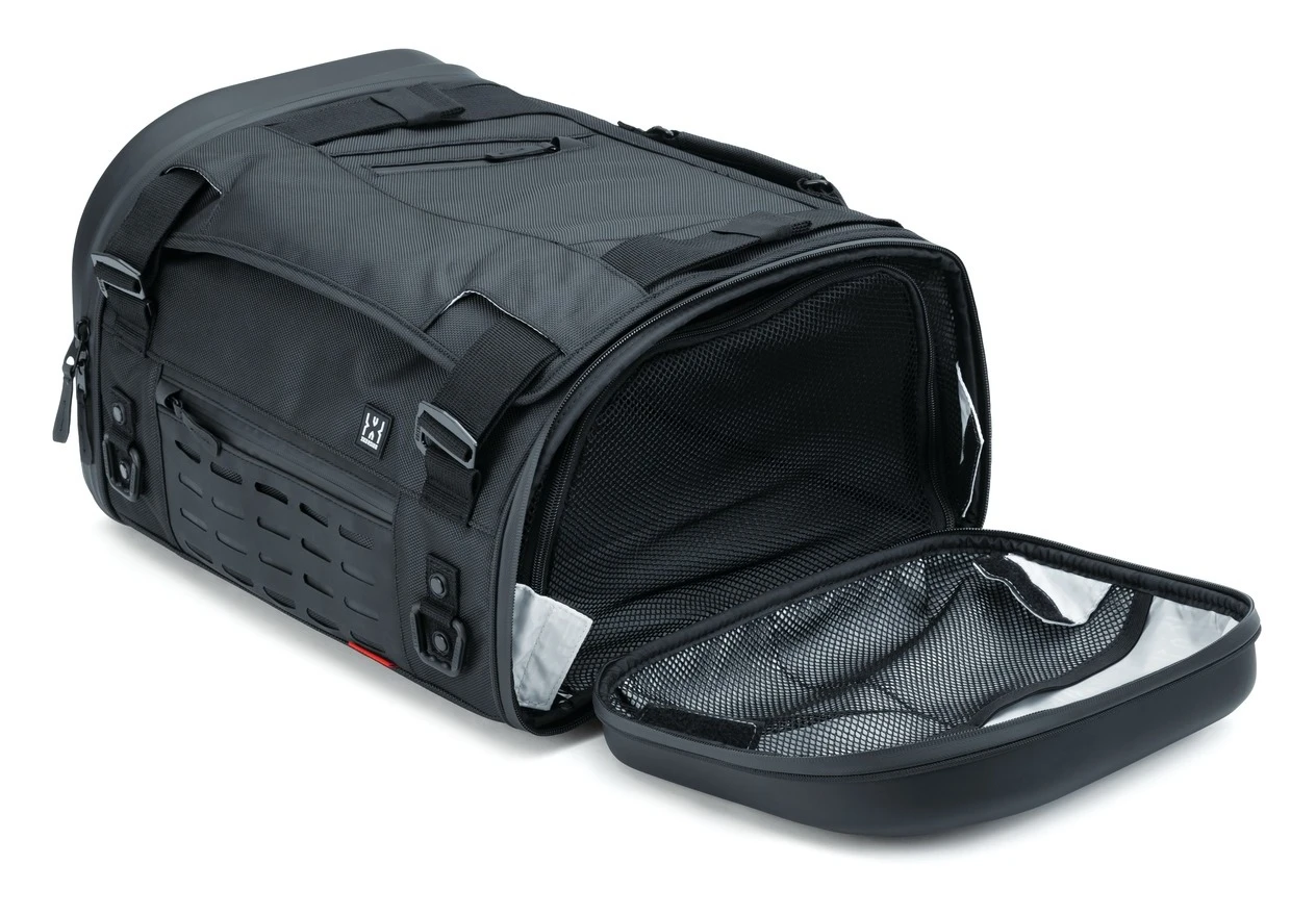 The XKursion XS Steward is not your ordinary run-of-the-mill roll bag. Kuryakyn designers have taken the classic roll bag blueprint to a whole ‘nother level with best-in-class materials and a 21st-century design that meets the needs of 21st-century riders. Whether strapped to your trunk, luggage rack, sissy bar or passenger seat, the Steward protects your precious cargo and gets the job done.